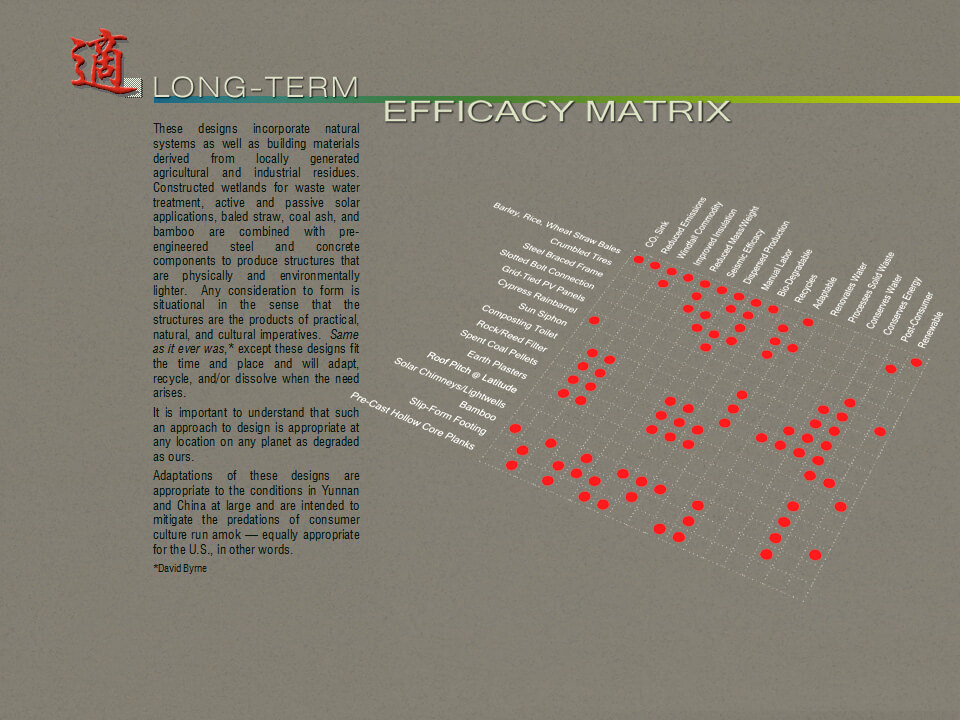 Long-term Design Solutions : Natural & Mechanical Systems Integration : Community Based Design